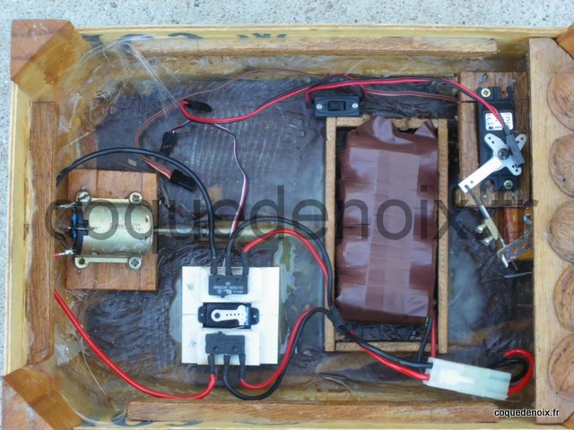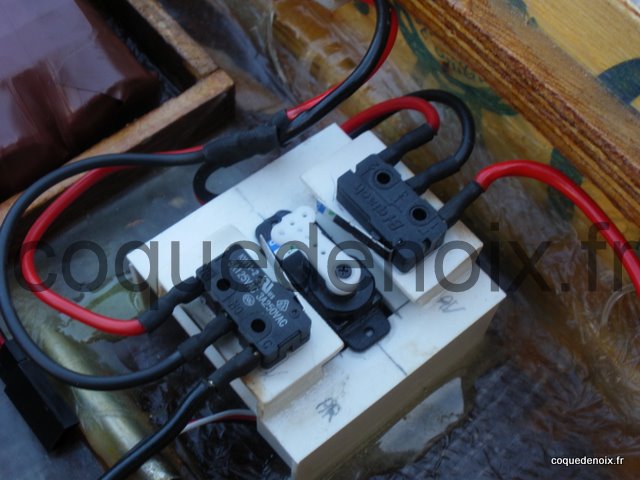 Mon premier montage fut avec l'aide d'un micro servo acheté sur le marché asiatique et de deux microswitchs fixés sur une platine de réaliser cet inverseur pour mon cageot de noix.